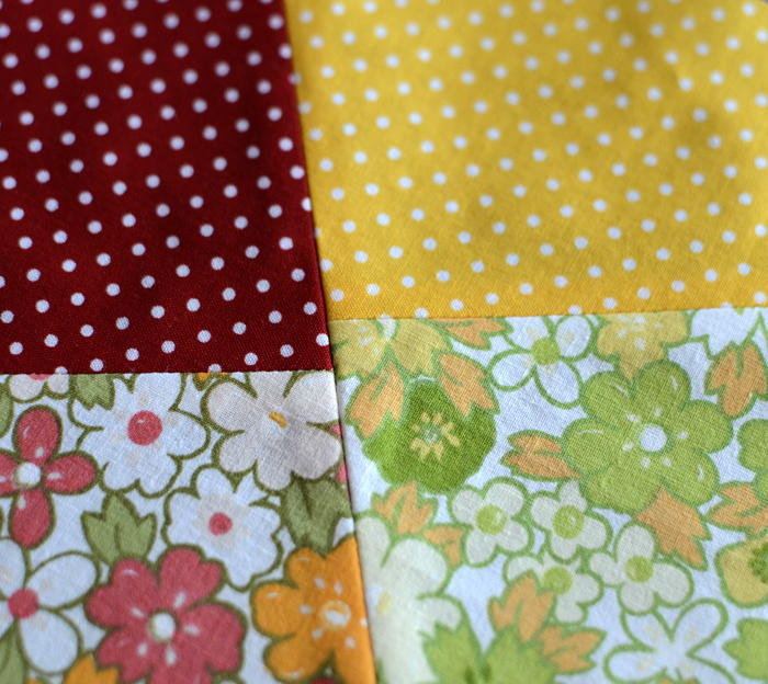 Η βασική ιδέα είναι πως ξεκινάμε με 4 διαφορετικά κομμάτια υφάσματος κομμένα όλα στο ίδιο μέγεθος(για παράδειγμα 25 x 25 cm).